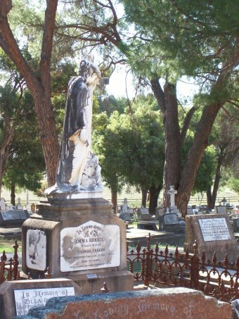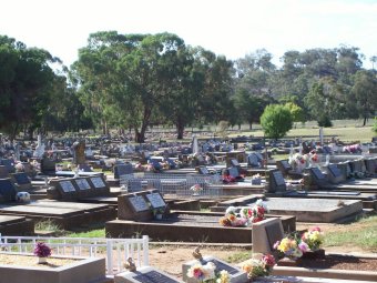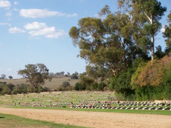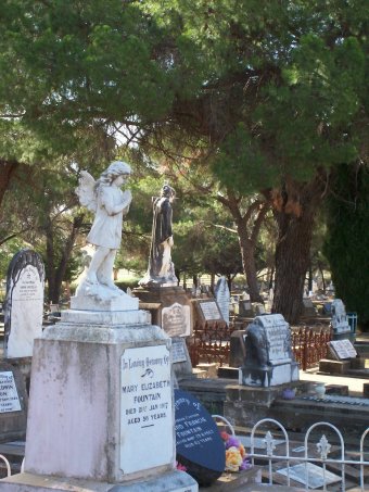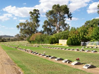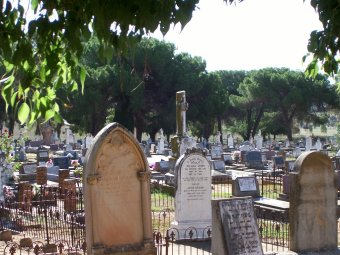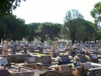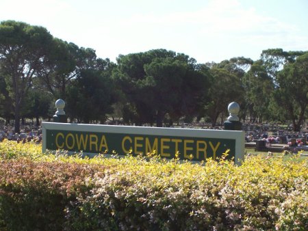 | The Cowra General Cemetery is located adjacent to the Cowra War Cemetery and the Cowra Japanese War Cemetery. The earliest headstones in Cowra Cemetery are (no 323) Julia Ellen Whitty died 4th February 1857 aged 6 years also Patrick Whitty died 21st March 1860 aged 45 years (no 1997)and 6th November 1860 William Ousby. The oldest age recorded on a headstone is 101 years (no 2009) Mary Kennedy who died in 1889. |