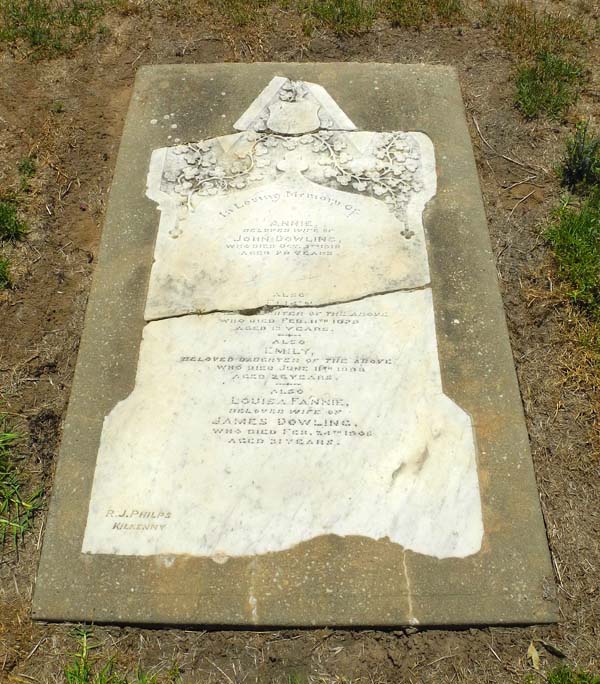 | DOWLING | Annie | photo | 1916-10-5 | 78 y | wife of John, mother of Ellen and Emily |