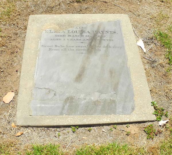 | HAYNES | Agnes Mary Ann | photo | 1865-3-27 | 4 y 3 m | top of stone broken off see HAYNES Eliza Louisa |