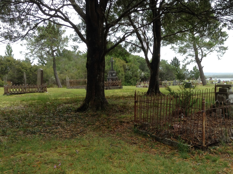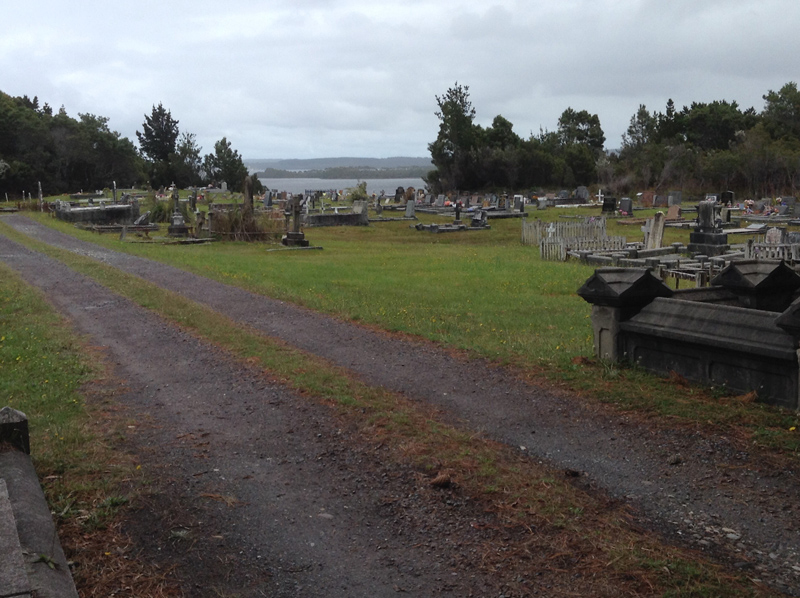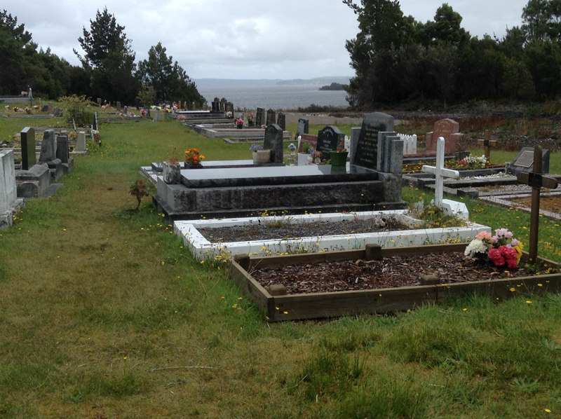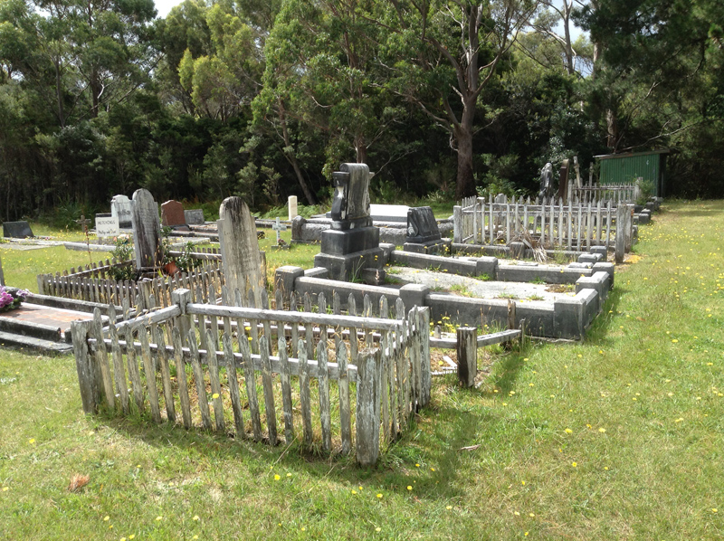 | The cemetery is located on top of a grassy hill and overlooks the ocean. Many earlier grave sites can be found mostly to the left of the road that intersects the cemetery, more recent graves can be found on the right. There is evidence of many of the earlier grave sites showing signs of decay due to the harsh environment. It is well maintained and later grave sites are set out in rows. However early grave sites are spread about the site with many having wood fences and headstone markers which are displaying the ravishes of time. Many are crumbling and unreadable. GPS