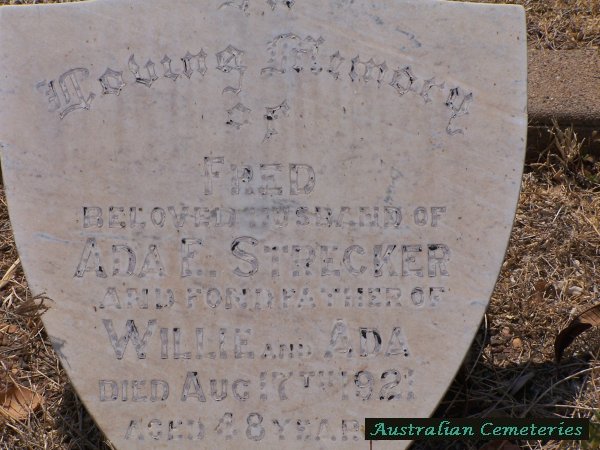 husband of Ada F Strecker and fond father of Willie and Ada |