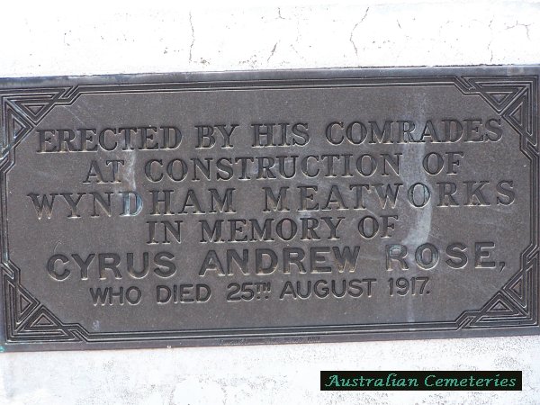 the Masonic Brethren of Wyndham and Districts to the memory of our beloved