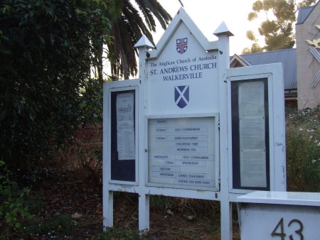 43 Church Terrace Walkerville Forever Remembered| This cemetery at the rear of the church, appears to be closed. Only two graves are visible and only one has a headstone that is unreadable . In 1847 meetings were held at the Sussex Hotel, Walkerville Terrace to plan the building of a church in this area. The local brewer, William Williams gave the land and enthusiastic support was given by his friends. St Andrew's was built and dedicated in 1848. All the windows in this historic church are of stained glass and there are many other interesting features to engross the visitor.