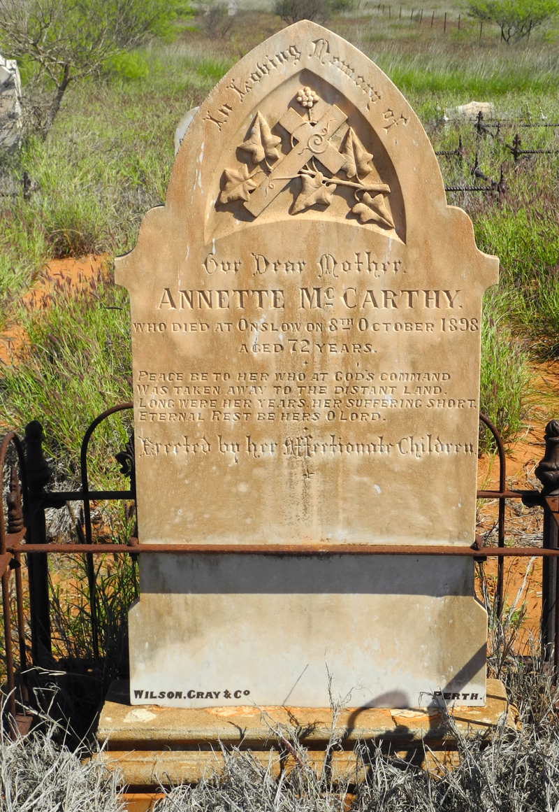 McCARTHY | Annette | Photo | 1898-10-5 | 1898-10--8 | 72 y | died Onslow, erected by her children |