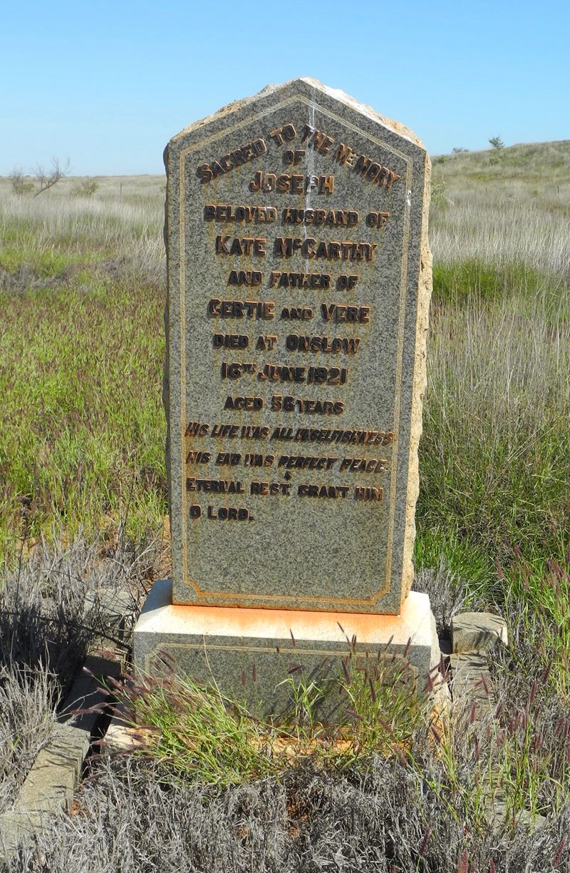 McCARTHY | Joseph | Photo | 1921-6-16 | 1921-6-30 | 56 y | husband of Kate, father of Gertie & Vere, died Onslow |