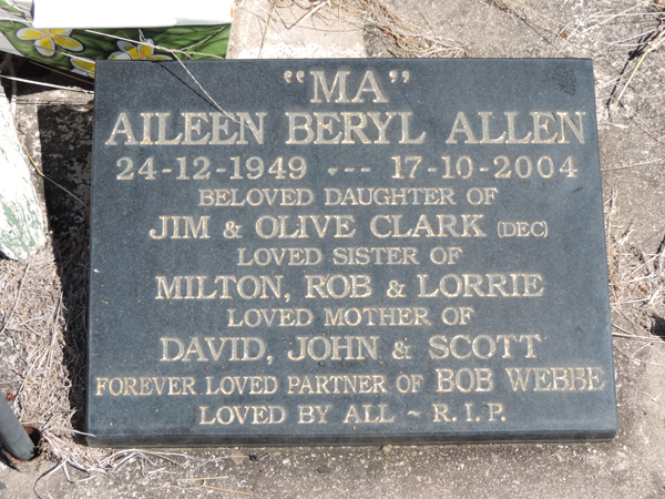 | Allen | Aileen Beryl (Ma) | photo | 24 Dec 1949 | 17 Oct 2004 | ||||||||