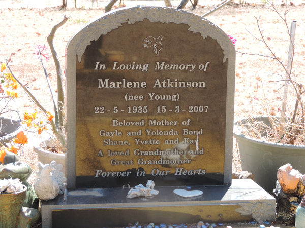 | Atkinson | Marlene | photo | 22 May 1935 | 15 Mar 2007 | nee Young | |||||||