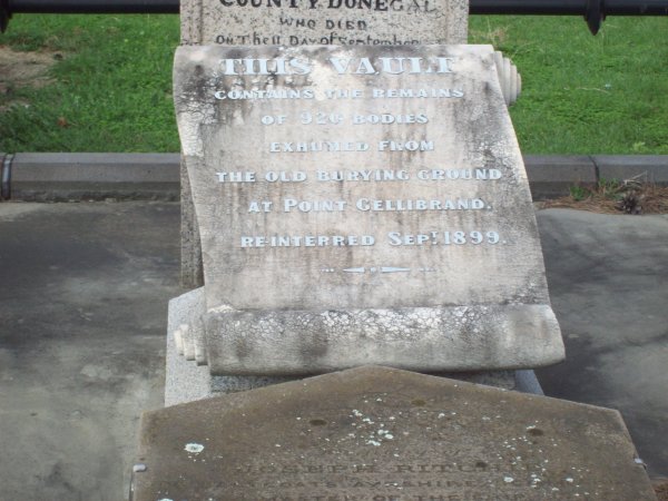 Burials were re-interred in a Vault at Williamstown Cemetery.