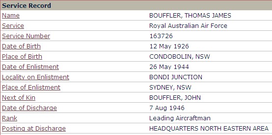 Inscription: “Darbs” Dearly loved son & mate of John & Judy. Sadly missed
