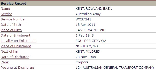 Funeral Director: W. G. Hearne (Govt. contract burial)