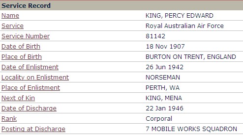 Inscription: ‘Beloved husband & father of Mena, Ron, Bill, Barry & Tom. 10 Grandchildren. R.A.A.F. 1942 – 1946’